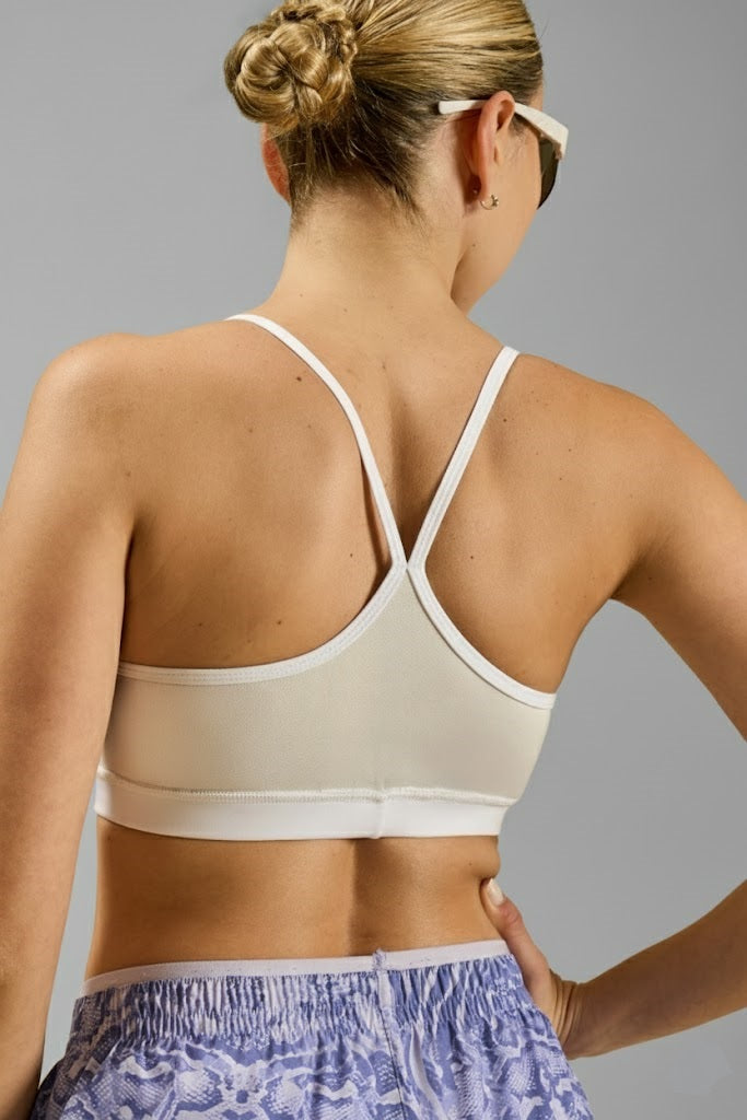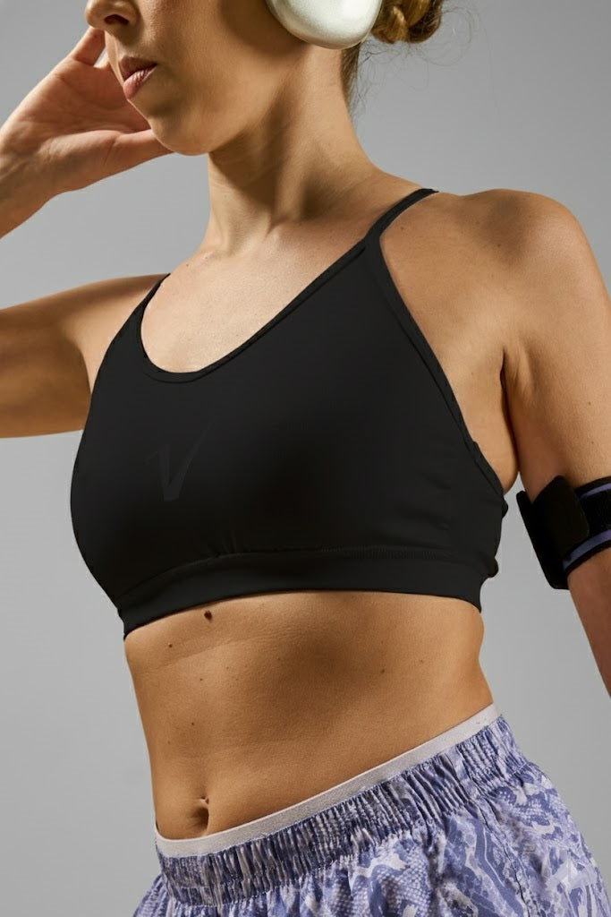 Este top deportivo de diseño minimalista es perfecto para entrenamientos de bajo impacto. Confeccionado en tejido técnico suave y elastizado, brinda libertad de movimiento y una sensación de frescura durante toda la actividad. Su escote en V y los breteles finos en la espalda aportan un toque de estilo sin sacrificar comodidad. Con una espalda de tejido mesh para mayor respirabildad y frescura. Pezoneras desmontables y breteles fijos.