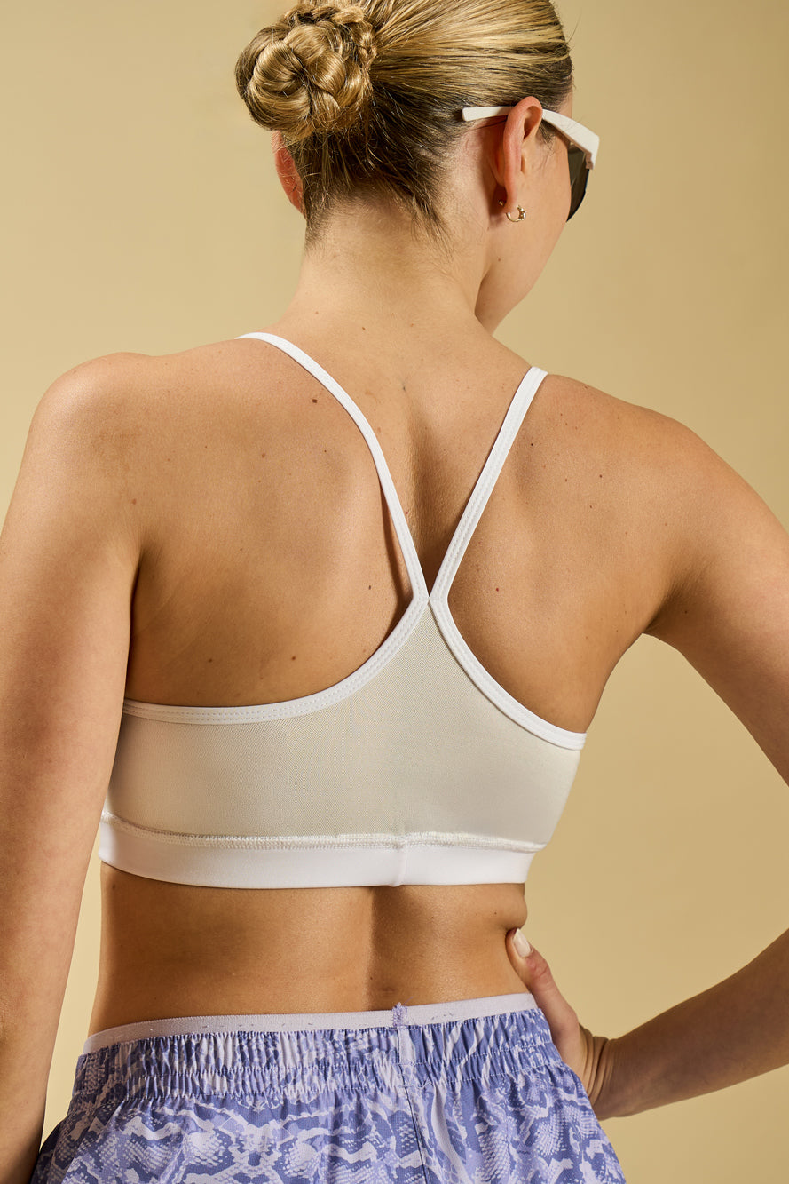 Este top deportivo de diseño minimalista es perfecto para entrenamientos de bajo impacto. Confeccionado en tejido técnico suave y elastizado, brinda libertad de movimiento y una sensación de frescura durante toda la actividad. Su escote en V y los breteles finos en la espalda aportan un toque de estilo sin sacrificar comodidad. Con una espalda de tejido mesh para mayor respirabildad y frescura. Pezoneras desmontables y breteles fijos.
