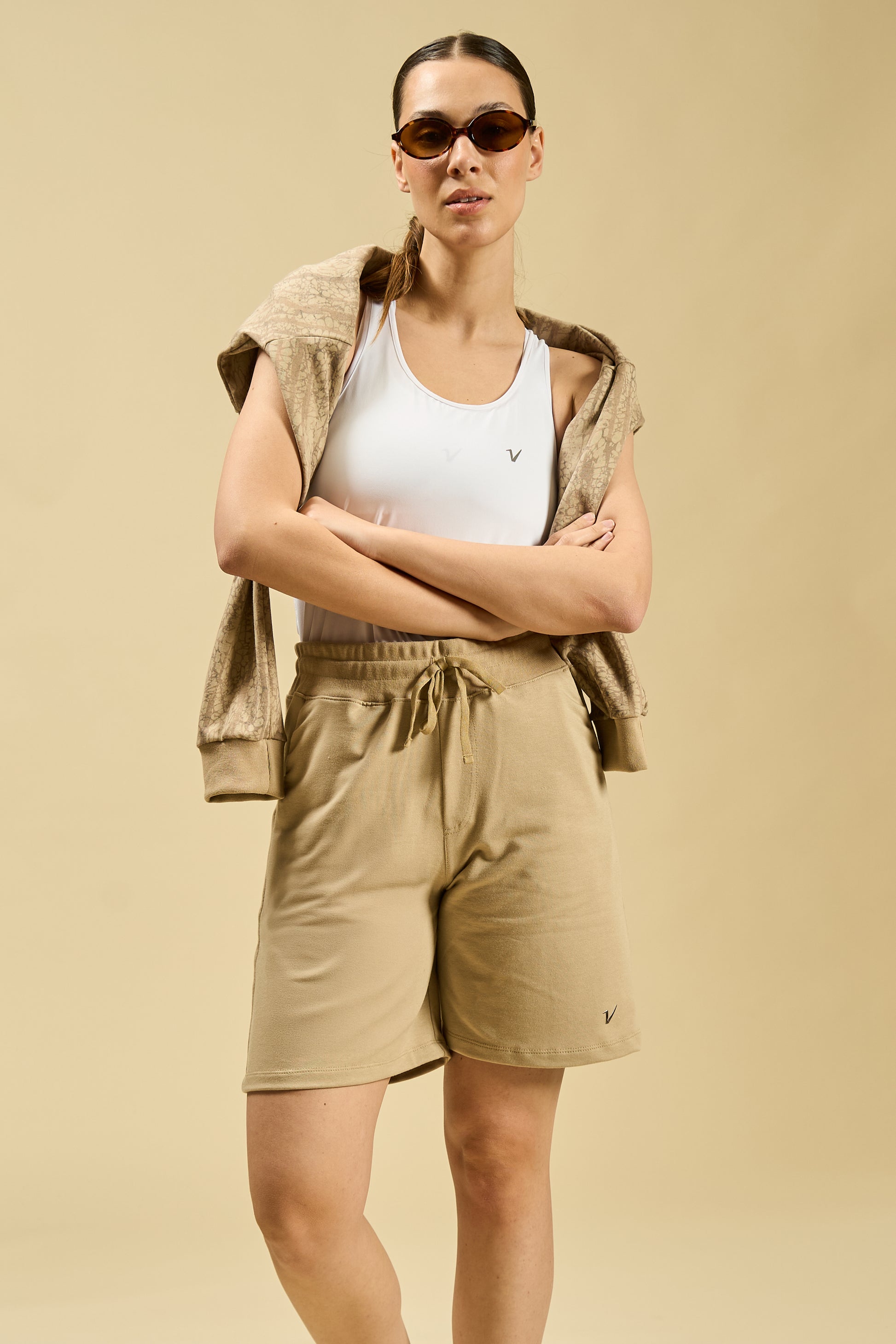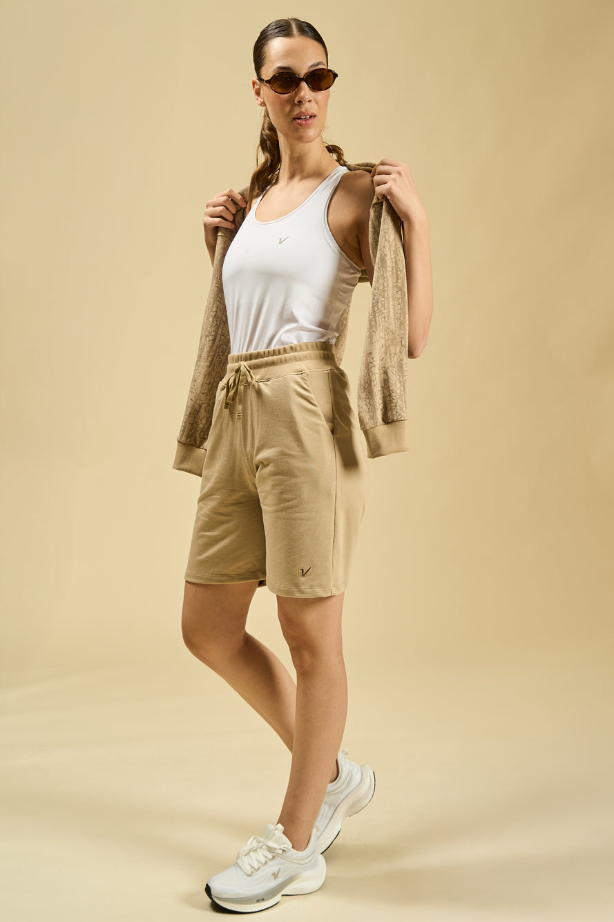 Diseñada para el relax sin perder estilo, la Bermuda Calm está confeccionada en rústico elastizado de tacto suave y estructura liviana. Su fit holgado y tiro alto brindan total libertad de movimiento y comodidad durante todo el día. Posee cintura elastizada con cordón regulable, bolsillos laterales y uno trasero tipo plastrón (patch pocket), ideal para llevar lo esencial.