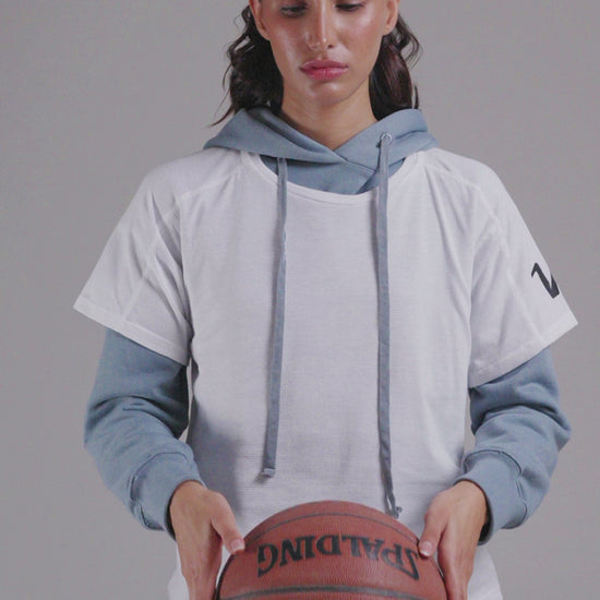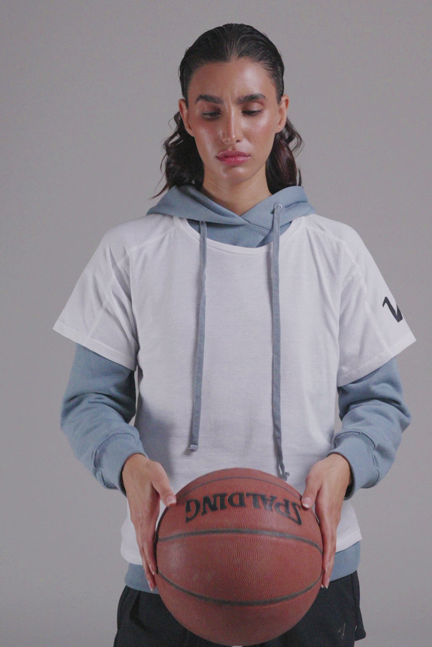Presenta un diseño con mangas raglán para mayor libertad de movimiento.