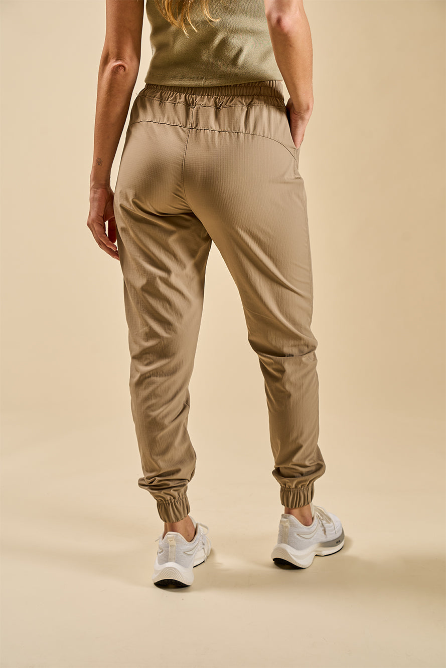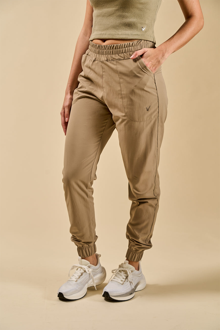 Diseñada para acompañarte en movimiento, esta babucha combina funcionalidad y estética urbana. Confeccionada en tejido plano tipo ripstop —liviano, resistente y con textura microcuadriculada—, ofrece un look técnico con inspiración outdoor. Su calce slim y tiro medio se adapta al cuerpo sin limitar el confort. Incluye bolsillos laterales funcionales, cintura elástica y puños con frunces que aportan una silueta más definida y contemporánea. Tejido ripstop liviano y resistente.