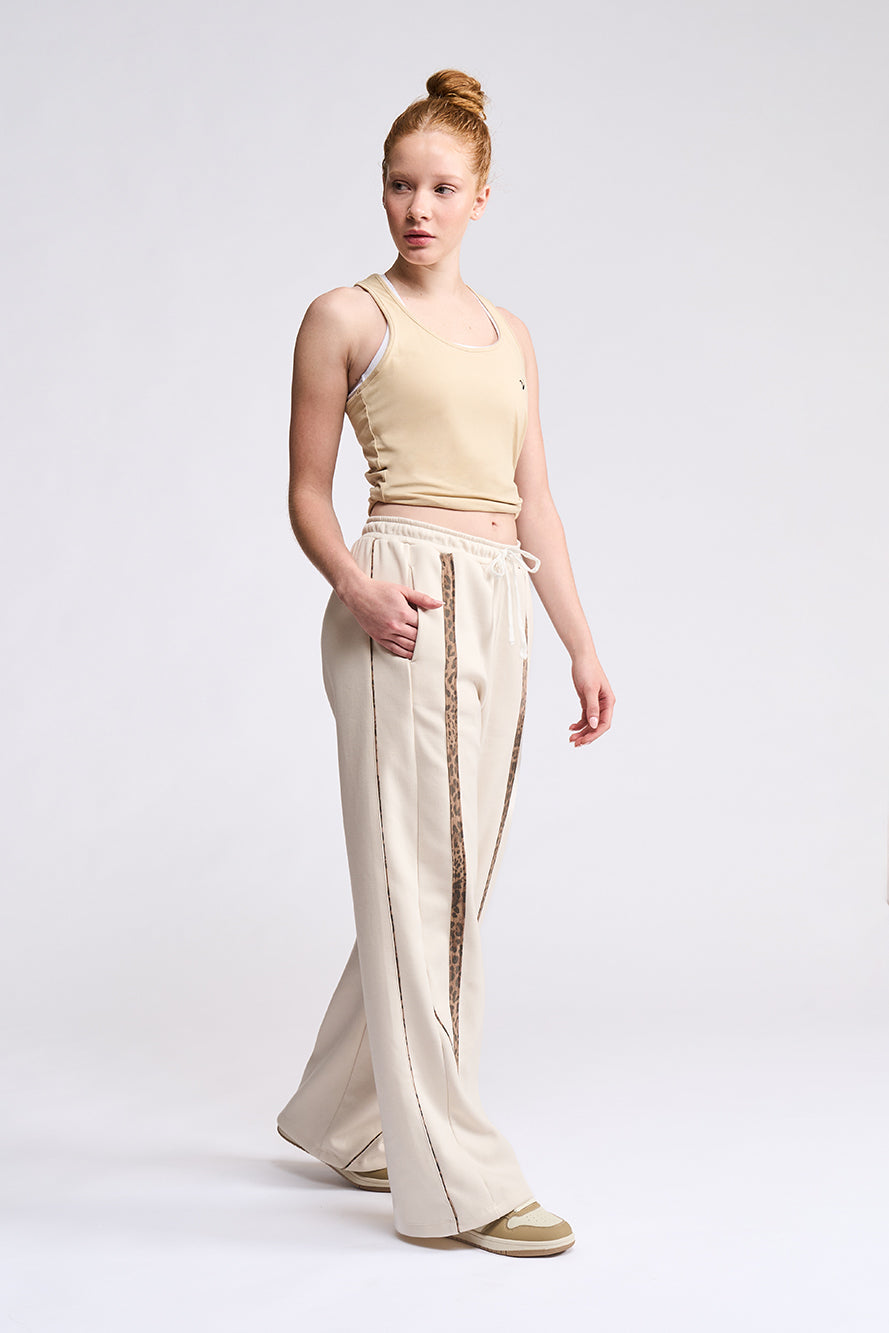 Este pantalón combina comodidad y estilo urbano con un toque distintivo. Confeccionado en intertrama de algodón, ofrece una textura suave, firme y con excelente caída, ideal para un look relajado pero con presencia. Su diseño de pierna ancha con recortes laterales estampados animal print aporta un contraste moderno y original. La cintura elastizada con cordón regulable garantiza un calce cómodo, mientras que los bolsillos laterales suman funcionalidad. Perfecto para combinar con buzos o camperas de la misma línea y lograr un conjunto coordinado con personalidad. Calce: Holgado con pierna ancha. Ideal para: uso diario, homewear o un look sporty con un toque chic.
