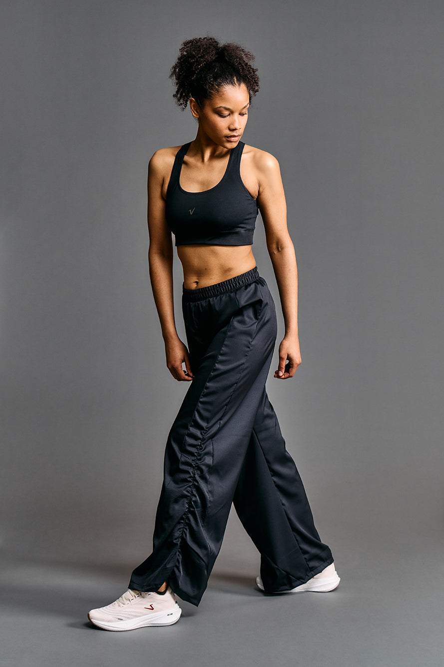 Combina diseño funcional y estilo deportivo. Su corte amplio y liviano ofrece libertad total de movimiento, mientras el detalle fruncido lateral agrega dinamismo y un look único. La cintura elástica brinda un ajuste cómodo y versátil, ideal tanto para entrenamiento como para un outfit urbano activo.Corte wide leg. Ideal para training o uso urbano.