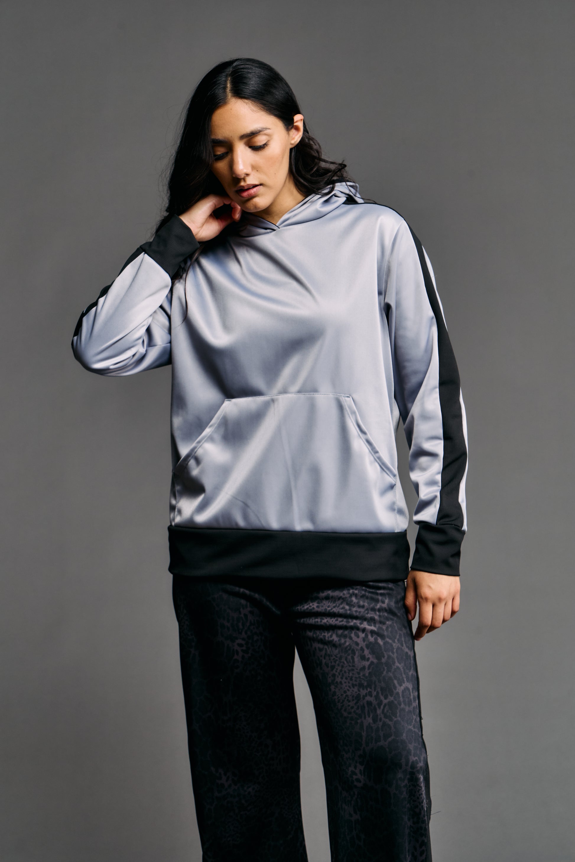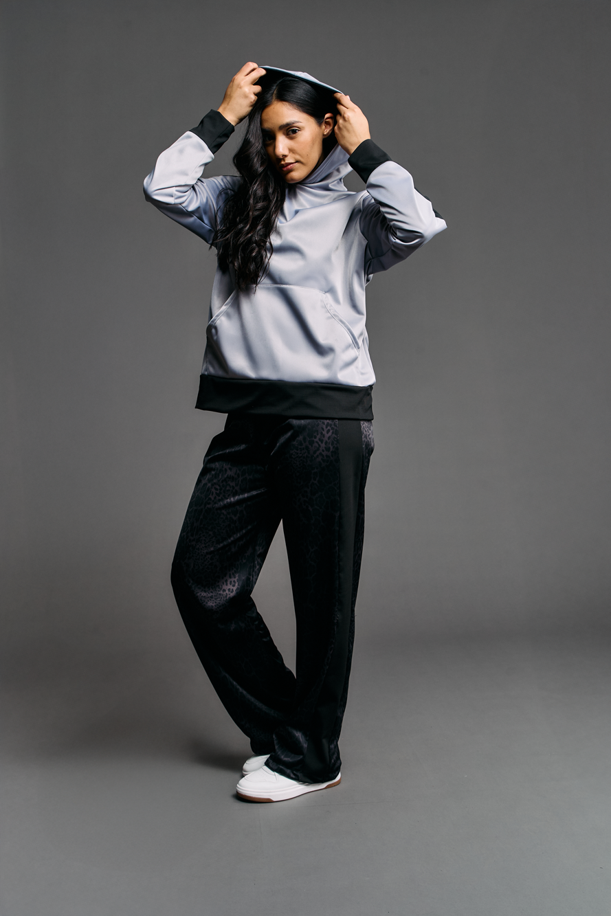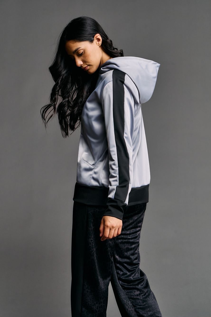Nuestro buzo con capucha frisado es la definición de estilo sporty-chic y comodidad. Confeccionado en un lujoso tejido Ketten frisado (tejido de plano de trama cerrada, suave y cálido en el interior), ofrece un tacto sedoso con el beneficio de un interior abrigado. El diseño presenta una capucha amplia y forrada para mayor estructura y calidez. Destaca por sus recortes laterales en color de contraste, que estilizan la silueta, y sus terminaciones de morley (tejido acanalado) en puños y cintura, que garantizan un ajuste seguro y cómodo. Es la prenda perfecta para un look urbano elevado que no sacrifica el confort.