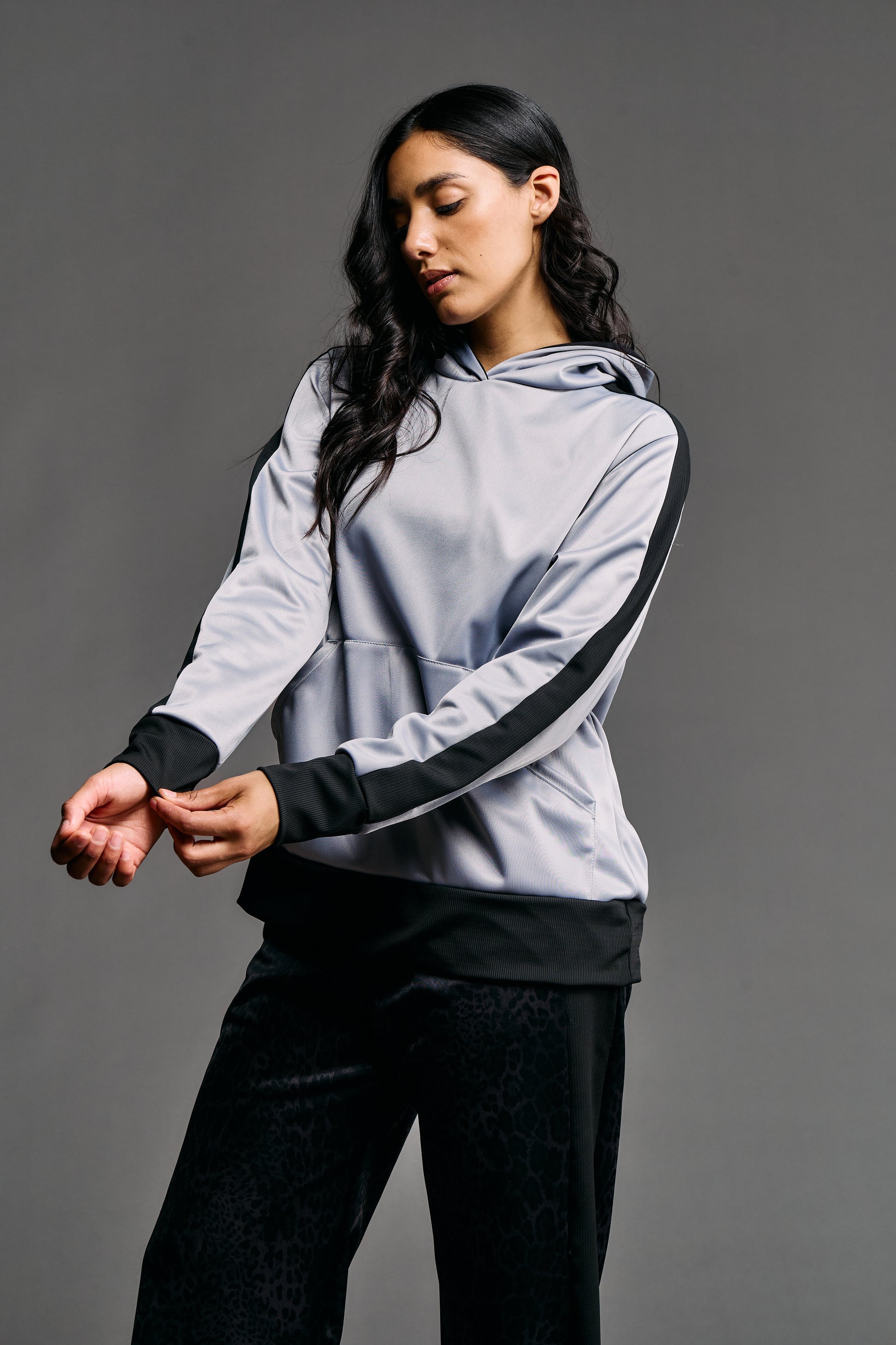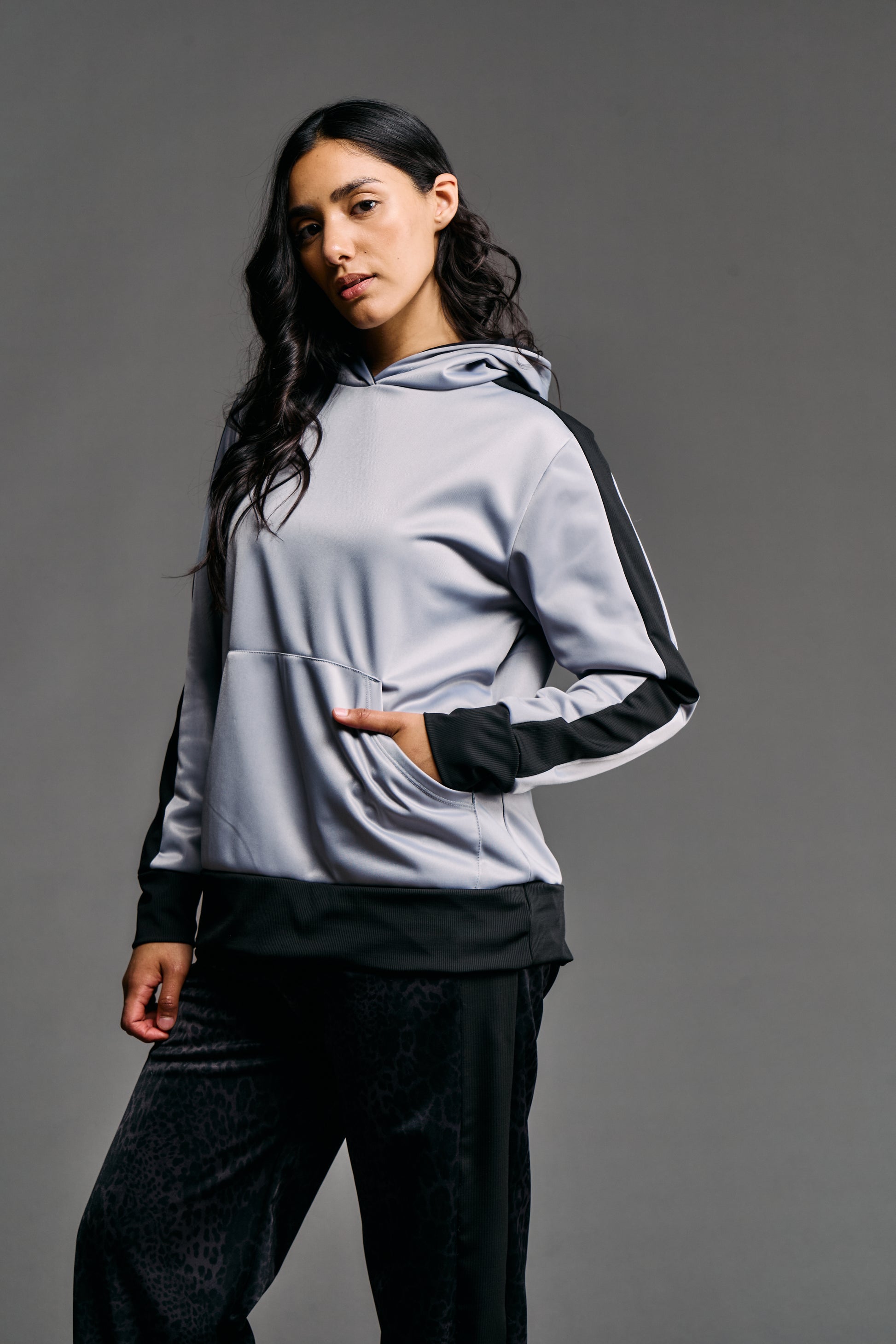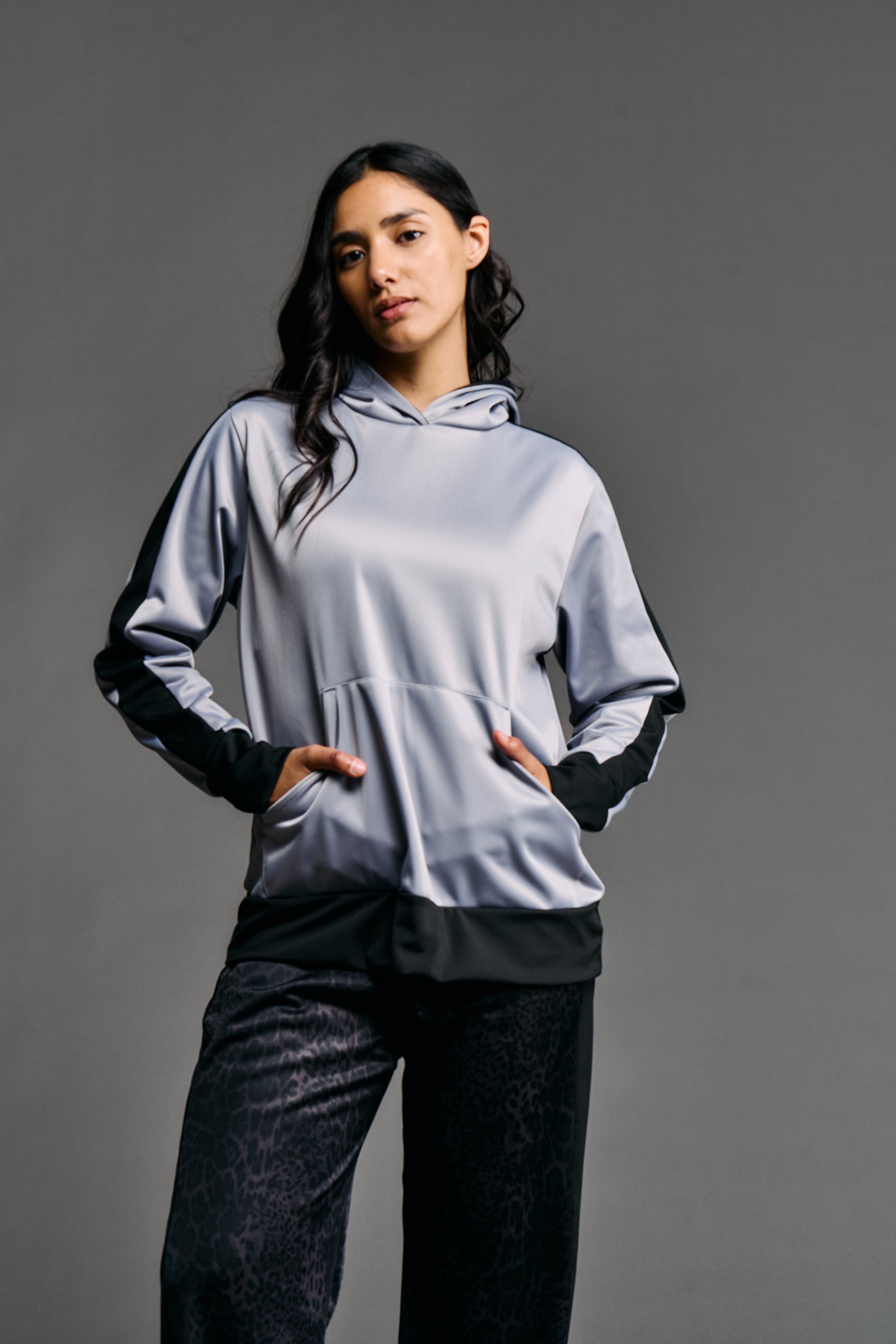 Nuestro buzo con capucha frisado es la definición de estilo sporty-chic y comodidad. Confeccionado en un lujoso tejido Ketten frisado (tejido de plano de trama cerrada, suave y cálido en el interior), ofrece un tacto sedoso con el beneficio de un interior abrigado. El diseño presenta una capucha amplia y forrada para mayor estructura y calidez. Destaca por sus recortes laterales en color de contraste, que estilizan la silueta, y sus terminaciones de morley (tejido acanalado) en puños y cintura, que garantizan un ajuste seguro y cómodo. Es la prenda perfecta para un look urbano elevado que no sacrifica el confort.
