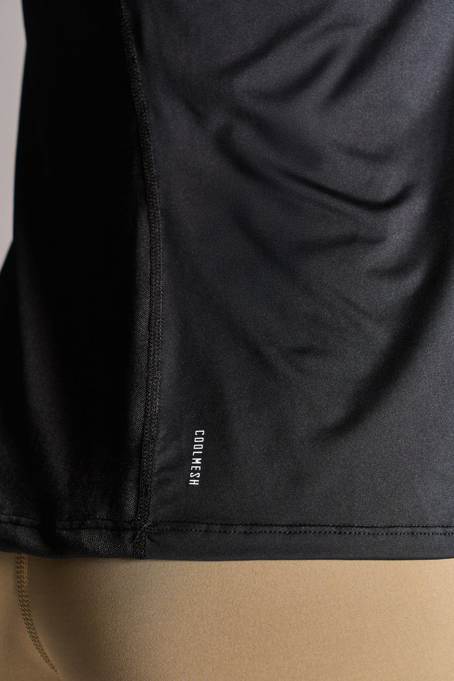 Esta prenda cuenta con tecnología COOLSKIN: su tejido se caracteriza por su Secado Rápido con Fibras Huecas diseñada para mantener tu cuerpo fresco, seco y cómodo. Su estructura con canales internos facilita la rápida evacuación del sudor y el ingreso de aire, regulando la temperatura corporal incluso en los entrenamientos más exigentes. La alta elasticidad del tejido acompaña cada movimiento, brindando libertad total y un ajuste dinámico que potencia tu rendimiento. El recorte trasero es confeccionado con tecnología COOLMESH: tejido técnico de alto rendimiento, su estructura incorpora dibujos tejidos que, además de aportar un atractivo estético, optimizan la ventilación y favorecen la circulación del aire. Gracias a su confección con fibras de secado rápido, COOLMESH gestiona eficazmente la humedad, permitiendo que el sudor se evapore con mayor velocidad y manteniendo la piel fresca y seca incluso durante la actividad física intensa.